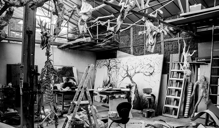 Il y a quelque chose de plus fort et de plus intense que dans un musée où les œuvres sont exposées et où le sentiment est là que l’on visite des morts. Ici, nous ne sommes pas dans un cimetière, mais dans une maternité, et on imagine tous ces accouchements en pagaille, jamais maîtrisés, ces souffrances pour donner au monde ce que l’on a dans le ventre, ici, l’œuvre se pense, se ressent, se casse, se refait, s’abandonne, devient forme. C’est ici qu’elle prend vie.